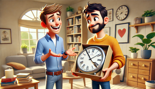 「壊れた部分」に焦点を当てるのではなく、「1日2回も正確だよね!」という肯定的なフレーズにもかかわらず、友達は「でもそれ以外は壊れてるじゃん!」と真面目にツッコミを入れてしまうところがオチのポイントです。