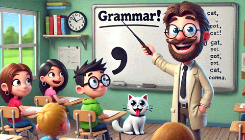 A student looked confused, so I explained, “A cat has claws at the end of its paws, while a comma is a pause at the end of a clause!”