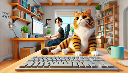 I tried to set up a home office, but my cat took it over. Now my meetings include a lot of “paws” for thought!